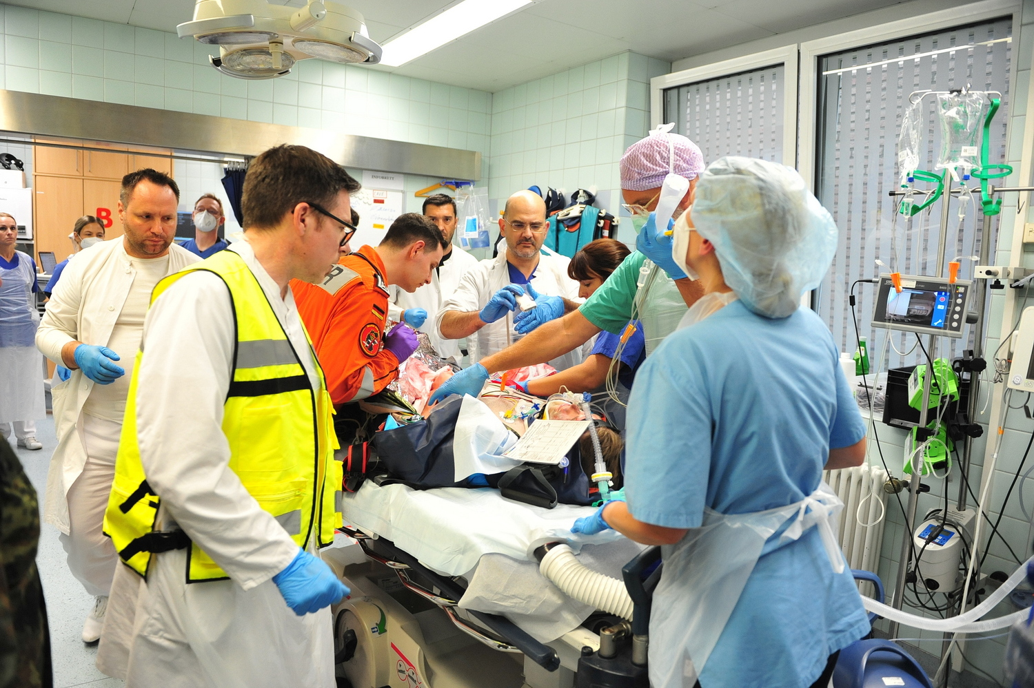 Der Patient war von den Organisatoren so realistisch vorbereitet worden, dass erst beim unmittelbaren Kontakt klar wurde, dass es sich um einen Übungsfall handelte. Für die Teams im Krankenhaus war die Situation damit kaum von einem echten Notfall zu unterscheiden. „Solche Übungen sind von unschätzbarem Wert, weil sie unsere Professionalität auf die Probe stellen. Wir haben gesehen, dass die Versorgungskette vom Hubschrauber bis zur Intensivstation funktioniert. Natürlich haben wir dabei auch Stellen gefunden, an denen wir noch besser werden können. Aber entscheidend ist: nichts hätte den Behandlungserfolg gefährdet“, erklärt der stellvertretende ärztliche Direktor und Chefarzt der Anästhesie und Intensivmedizin, Dr. med. Markus Huppertz-Thyssen.